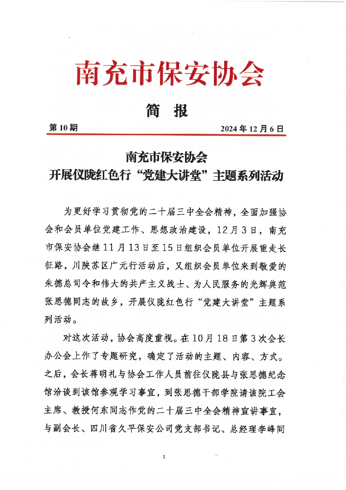 · 南充市保安協(xié)會開展儀隴紅色行“黨建大講堂”主題系列活動